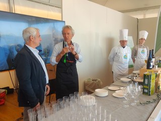Sold out anche per il secondo laboratorio didattico de Il Sale Della Liguria, che ha proposto un Baccalà delle Antiche Vie del Sale, servito con spuma di Castagne Garessine De.Co. e accompagnato dal Pigato ‘Moie', dell'azienda vinicola Ramoino, cotto in olio Raineri. C'è stata anche la visita del presidente della Regione Giovanni Toti che ha provato l'esperienza olfattiva del Sale Della Liguria, accompagnato dall'assessore alla Formazione Marco Scajola.