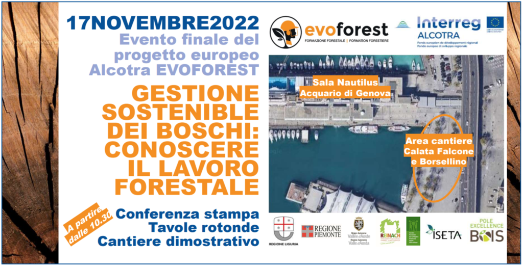Il progetto EVOFOREST di cooperazione interistituzionale vede la sinergia tra Regione Liguria (capofila), Regione Piemonte, Regione Autonoma Valle d’Aosta per l’Italia, Centro Forestale della Provenza – Costa Azzurra, Centro di Formazione professionale de La Motte Servolex, il Liceo Agricolo di Poisy (ISETA) ed il Pole di Excellence Bois della Savoia per la parte francese. Informazioni sul sito https://evoforest.eu/it/
