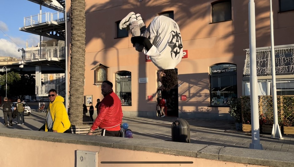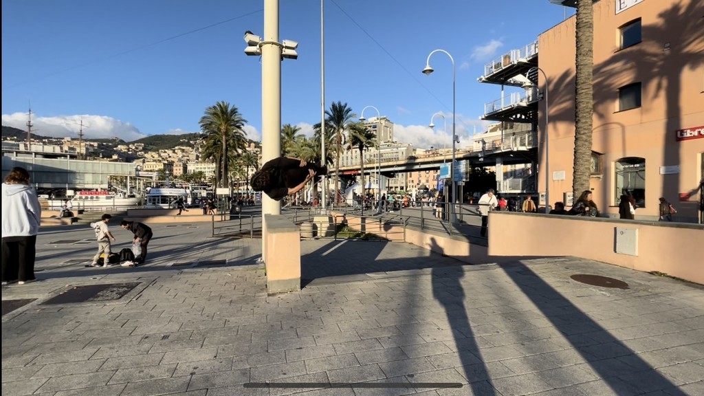 “A Genova il parkour si può fare ovunque, la città non dispone di posti, che noi chiamiamo spot, elevatissimi per chi è più esperto ma ha un buon potenziale. Uno spot si individua se si trovano ostacoli da sorpassare come muretti, ringhiere, marciapiedi: conta molto la fantasia che ci aiuta a immaginare come superare questi ostacoli e, con l’esperienza, aumenta”.