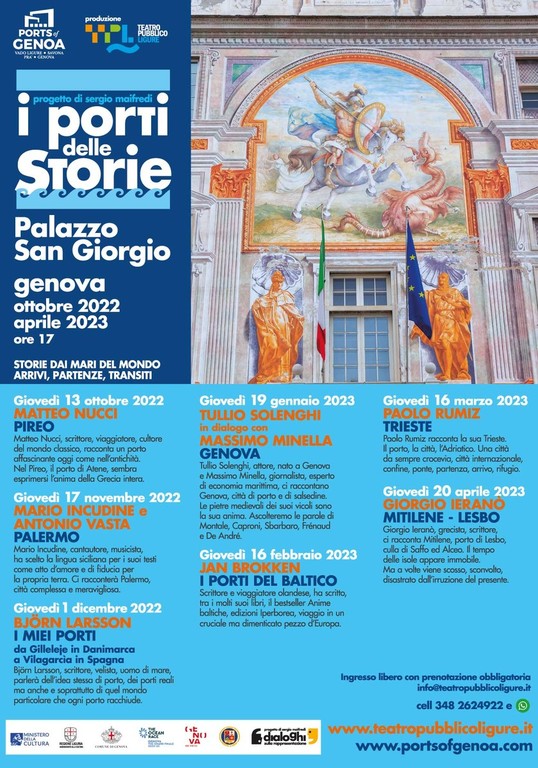 Björn Larsson è il protagonista del terzo viaggio nei “Porti delle storie”, il progetto ideato e diretto da Sergio Maifredi per Teatro Pubblico Ligure, creato per l’Autorità di Sistema Portuale del Mar Ligure Occidentale, patrocinato dall’Accademia della Marina Mercantile e da Rai Liguria. Lo scrittore e uomo di mare svedese ci condurrà dal Mare Mediterraneo all’Oceano Atlantico con “I miei porti. Da Gilleleje in Danimarca a Vilagarcìa in Spagna”, durante l’incontro in programma giovedì 1 dicembre alle ore 17 nella Sala del Capitano di Palazzo San Giorgio a Genova. L’ingresso è libero con prenotazione obbligatoria al numero 348 2624922 (anche whatsapp) o a info@teatropubblicoligure.it. Informazioni su www.teatropubblicoligure.it e www.portsofgenoa.com.
