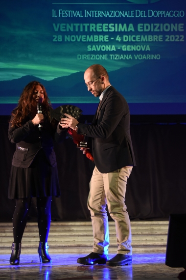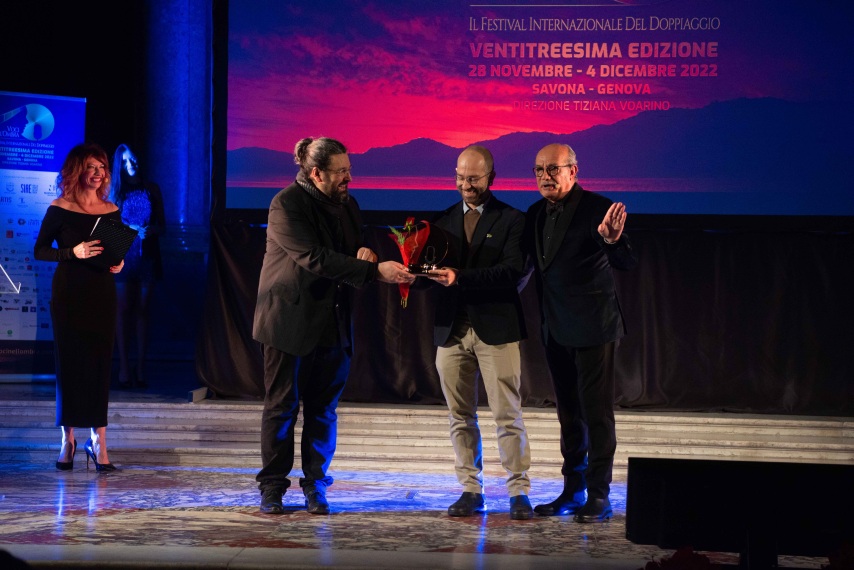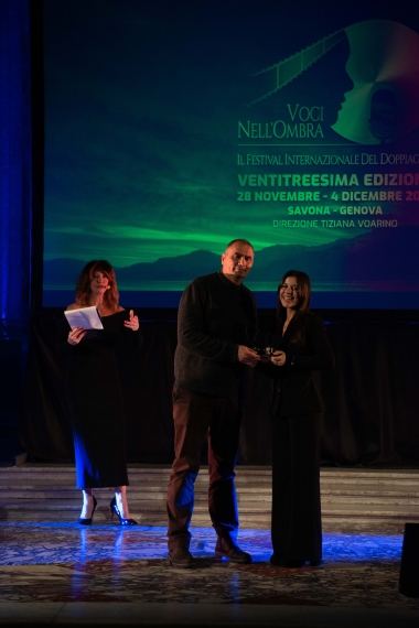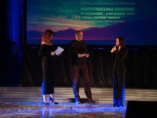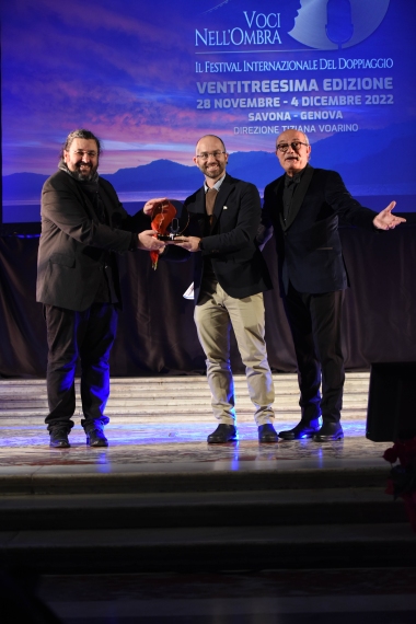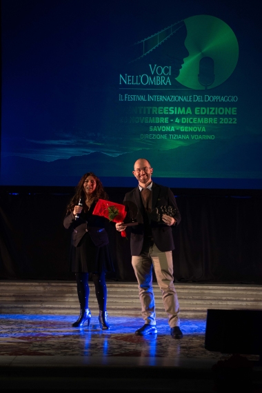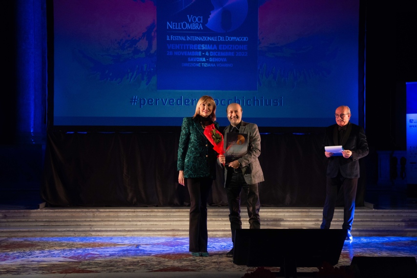 La XXIII edizione del Festival Internazionale del Doppiaggio “Voci nell’Ombra”, diretta da Tiziana Voarino, si è conclusa domenica 4 dicembre 2022 a Genova nel Salone del Maggior Consiglio di Palazzo Ducale con la cerimonia di premiazione degli Anelli d’Oro alle migliori voci e ai professionisti del settore che si sono distinti nel 2022. Una vera e propria festa, condotta con eleganza e simpatia da Maurizio Di Maggio e Patrizia Caregnato, tra musica dal vivo e momenti di comicità. Ma la vera protagonista è stata l’emozione di chi ha visto coronata la propria carriera con un riconoscimento che dall’ombra della sala di registrazione lo ha portato al centro della scena e sotto le luci della ribalta. Il Premio “Claudio G. Fava” alla carriera, intitolato a uno dei fondatori del Festival, è stato assegnato a Luca Biagini, doppiatore fra gli altri di John Malkovich, Colin Firth, Michael Keaton, Hugo Weaving, nonché protagonista della fiction Rai “Sopravvissuti”, girata a Genova. L’Anello d’Oro per il miglior doppiaggio generale nella sezione Cinema è andato a Rodolfo Bianchi per avere diretto la versione italiana del film “Macbeth” di Joel Coen. L’Anello d’Oro per le migliori voci maschile e femminile del cinema è stato assegnato a Roberto Chevalier, doppiatore di Tom Cruise in “Top Gun: Maverick”, e a Federica De Bortoli, doppiatrice di Kristen Stewart nel film “Crimes of the Future”. Le migliori voci nel settore televisione sono quelle di Emiliano Coltorti, Jared Leto/Adam Neumann nella serie “We Crashed”, e Laura Romano, doppiatrice di Viola Davis in “The First Lady”, dedicato a Michelle Obama. L’Anello d’Oro per il miglior doppiaggio generale televisivo è stato assegnato a Stefano Benassi per “Stranger Things”. Il premio per l’adattamento dei dialoghi è andato ad Valerio Piccolo per il film “Elvis” e a Marco Barbato per la serie televisiva “House of the Dragon”. Nella sezione Prodotti di animazione l’Anello d’Oro e il Premio “Le Voci di Cartoonia 2022” sono stato vinti da Chiara Fabiano, la voce di Meilin “Mei” Lee in “Red”, mentre per la sezione Programmi d’informazione, il conduttore della trasmissione Rai “Geo” Emanuele Biggi ha ritirato l’Anello d’Oro e l’Anello Verde 2022, quest’ultimo a sottolineare la qualità, la sensibilità e la competenza nel trattare i temi ambientali. Il PREMIO SIAE è andato a Carlotta Cosolo, dialoghista di film come “Il potere del cane” e della serie tv “La regina degli scacchi”, tra gli altri, mentre il PREMIO LUDOVICA MODUGNO in collaborazione con Paolo Modugno e il NUOVO IMAIE è andato a Alessandro Carloni.