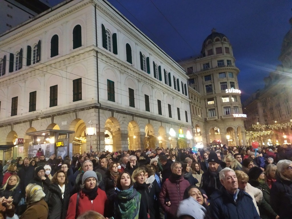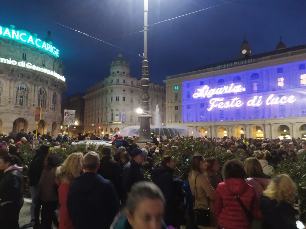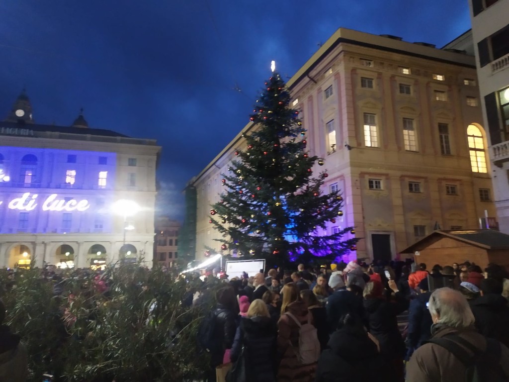 Con l'accensione del grande albero in una piazza De Ferrari gremita sono ufficialmente iniziate le festività natalizie a Genova e in Liguria.