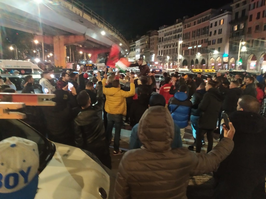 L'entusiasmo della numerosa comunità marocchina genovese s'è scatenato, portando molti tifosi a festeggiare in piazza Caricamento questa vittoria non scontata.