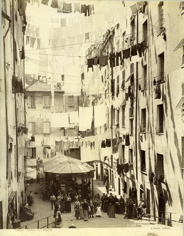 Questo dovevano trovarsi davanti i passanti che attraversavano via Balbi e volgevano lo sguardo verso i Truogoli di Santa Brigida.
