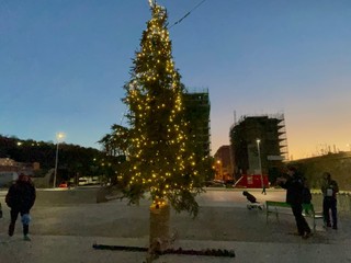 Illuminati due alberi di Natale in memoria delle vittime del crollo del ponte Morandi. L’accensione dell’albero della Radura della Memoria - montato da Aster, donato dal Comune di Masone e addobbato e sponsorizzato dalla ditta Verdina - è stata preceduta dalla “camminata” dell’associazione no profit “Noi per voi” che ha portato, partendo da Masone, 43 piccoli abeti che sono stati affiancati agli alberi della radura stessa.