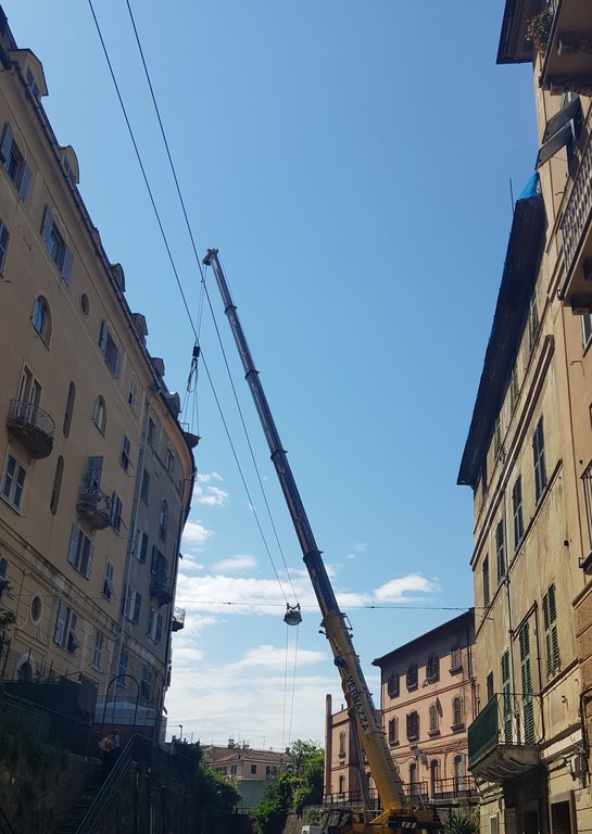 "Ben due lavoratori spinti dalla disperazione per non aver ricevuto lo stipendio si sono arrampicati su una gru nel cantiere edile delle ex Poste a Borgo Incrociati dietro alla stazione Brignole"