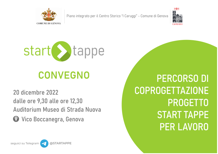 Si è svolto quest’oggi, presso l’Auditorium di Strada Nuova a Genova, il convegno dedicato al progetto Start Tappe su orientamento ed inclusione lavorativa, per dare il primo riscontro pubblico dei risultati raggiunti. Vi hanno partecipato anche il sindaco Marco Bucci, l’assessore alle Politiche sociali Lorenza Rosso e l'assessore allo sviluppo economico e lavoro Mario Mascia.