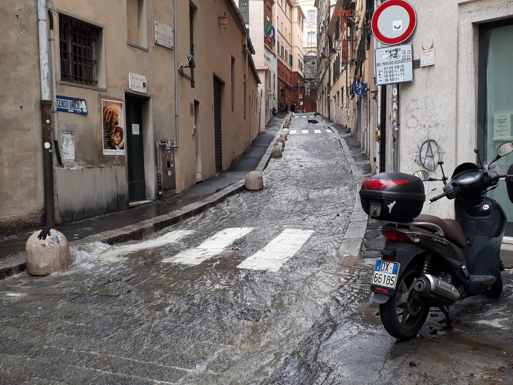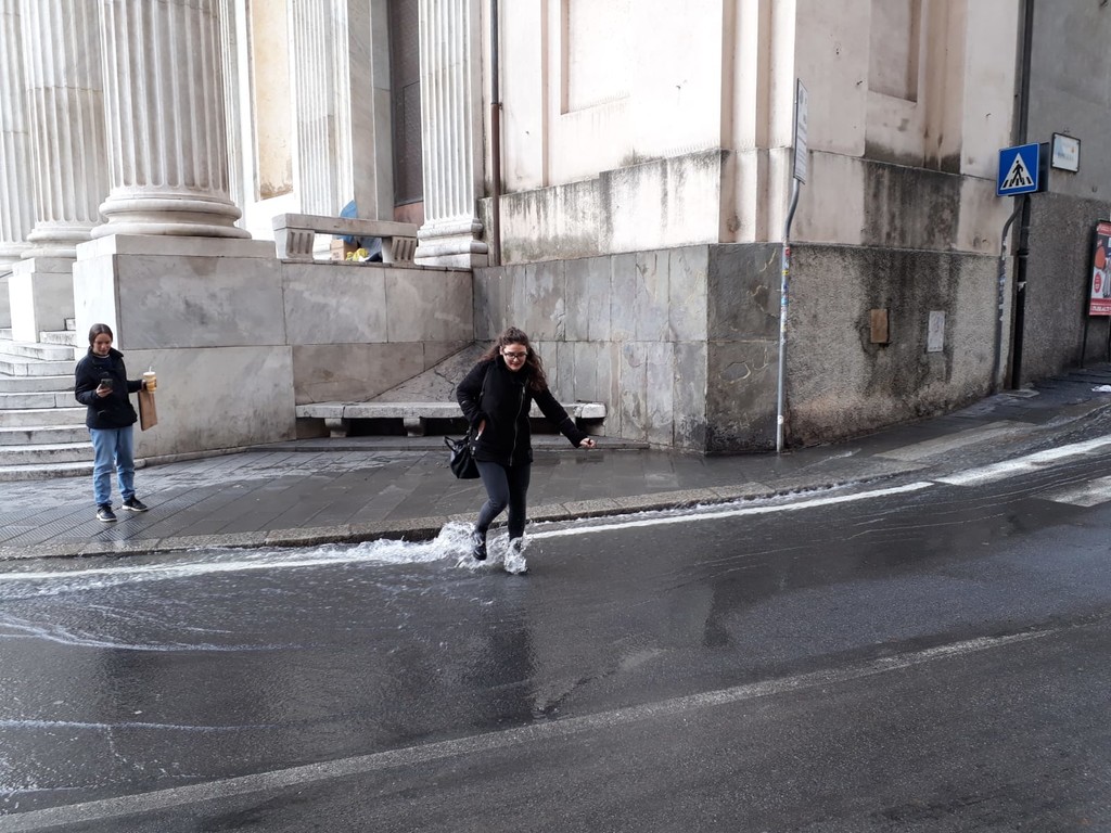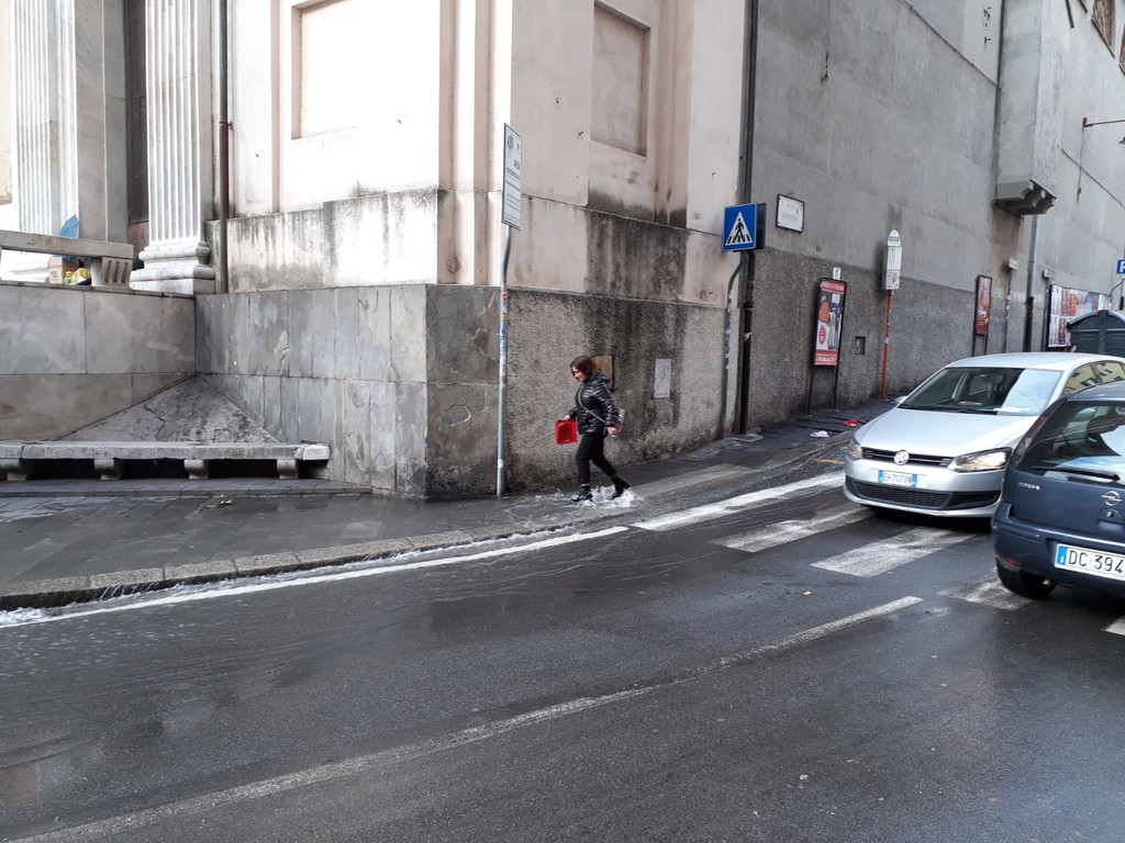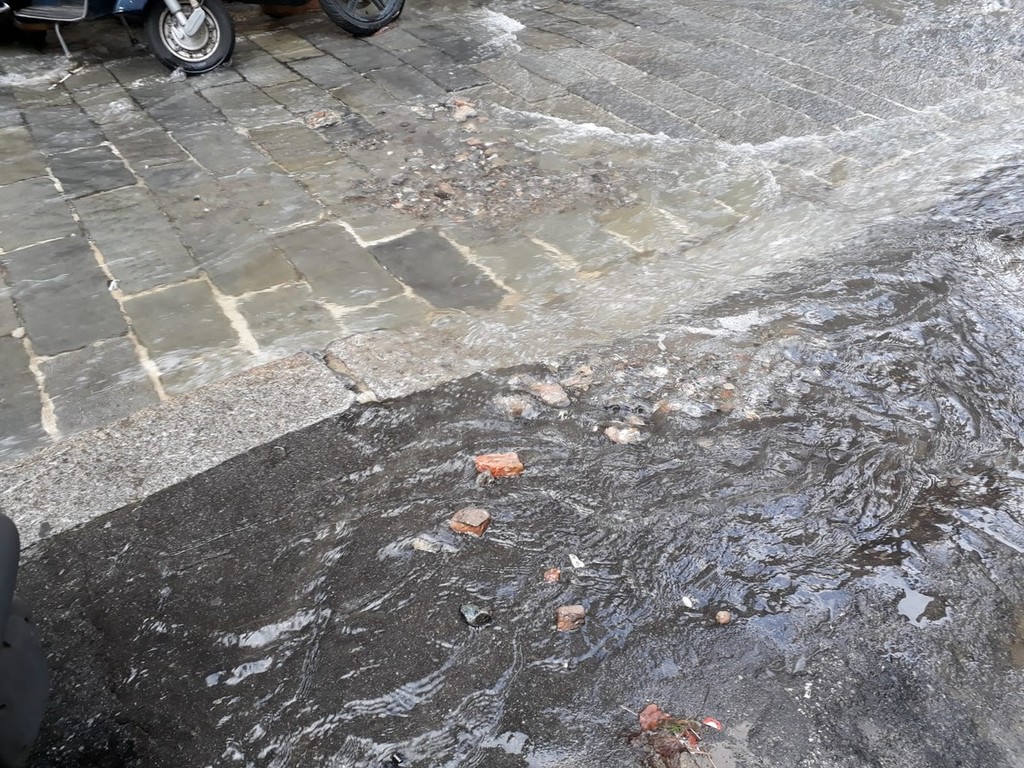 Intorno a mezzogiorno è esplosa una tubatura in via Dino Bellucci. L'acqua sgorga copiosa e scorre in cascatelle fino a piazza della Nunziata, allagando nel tragitto piazza Bandiera.