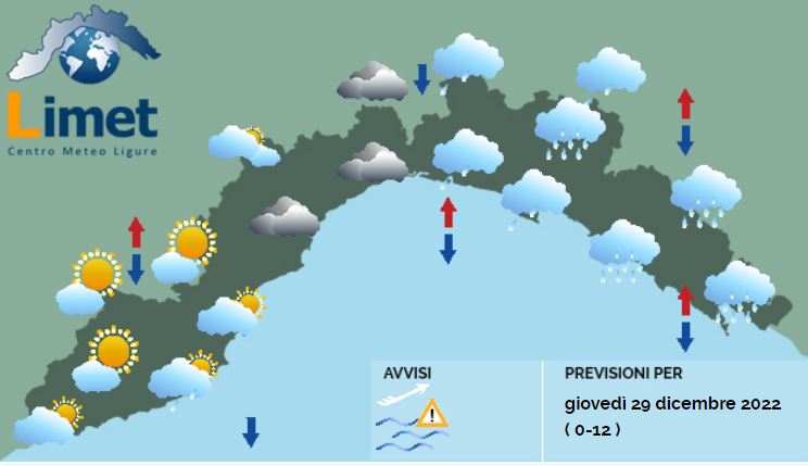 Ecco le previsioni meteo di Limet per la giornata di oggi, giovedì 29 dicembre.