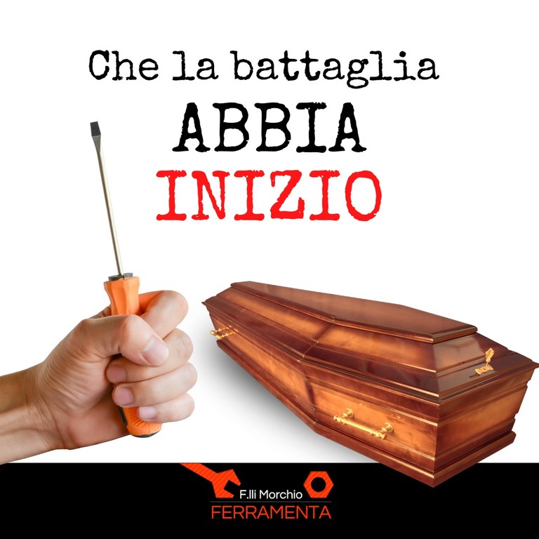 Il marketing che strizza l’occhio allo humor anglosassone colpisce anche a Genova: se dopo l’inaugurazione della prima sede in Liguria dell’agenzia di onoranze funebri Taffo, tra polemiche ed entusiasmo da parte dei cittadini, uno dei negozi di ferramenta più famosi del centro storico ha deciso di affrontare la sua campagna pubblicitaria con lo stesso spirito.