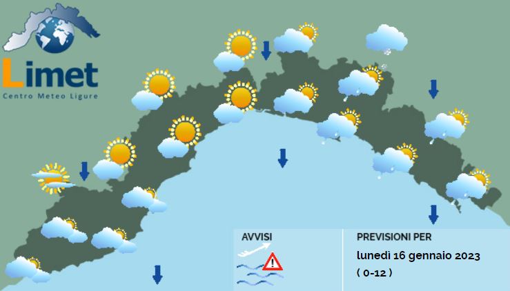 Ecco le previsioni meteo a cura di Limet per la giornata di oggi, lunedì 16 gennaio.