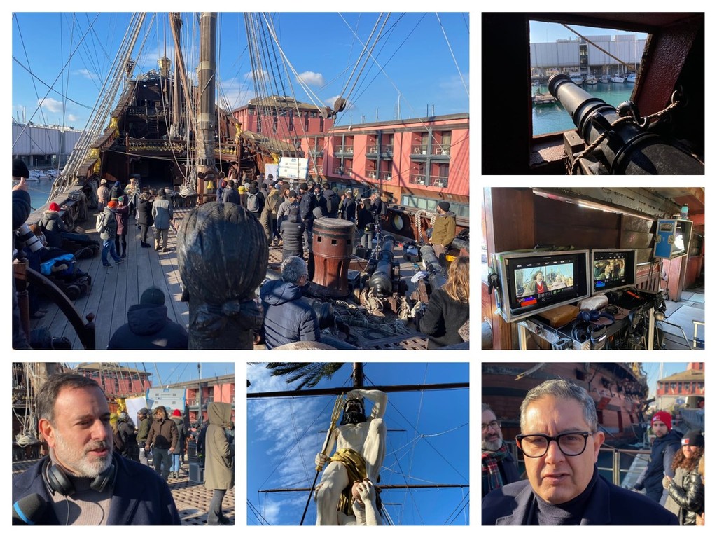 La scelta del Galeone come location delle riprese non è stata, infatti, casuale: il protagonista dello spot sarà infatti Cristoforo Colombo, come spiegato dal regista: “Siamo qui a girare con Maurizio Lastrico e Alice Arcuri il nuovo spot per la Regione, con una Sanremo version e poi una versione normale che andrà in onda in primavera. Facciamo finta che il Galeone sia una caravella, c’è un Cristoforo Colombo che sta per partire, ma alla fine in America cosa c’è che non può già trovare in Liguria? Quindi poi rinuncerà a partire per le suggestioni e anche per amore e… non scopre l’America”.
