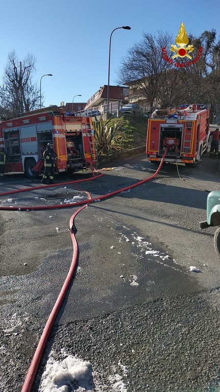 Casarza Ligure, a fuoco due furgoni, uno alimentato a Gpl, difficile intervento dei vigili del fuoco