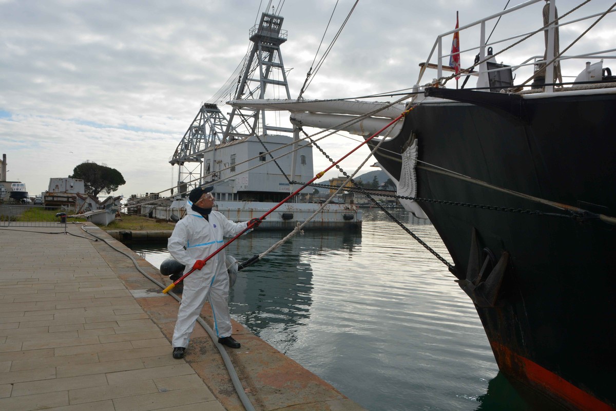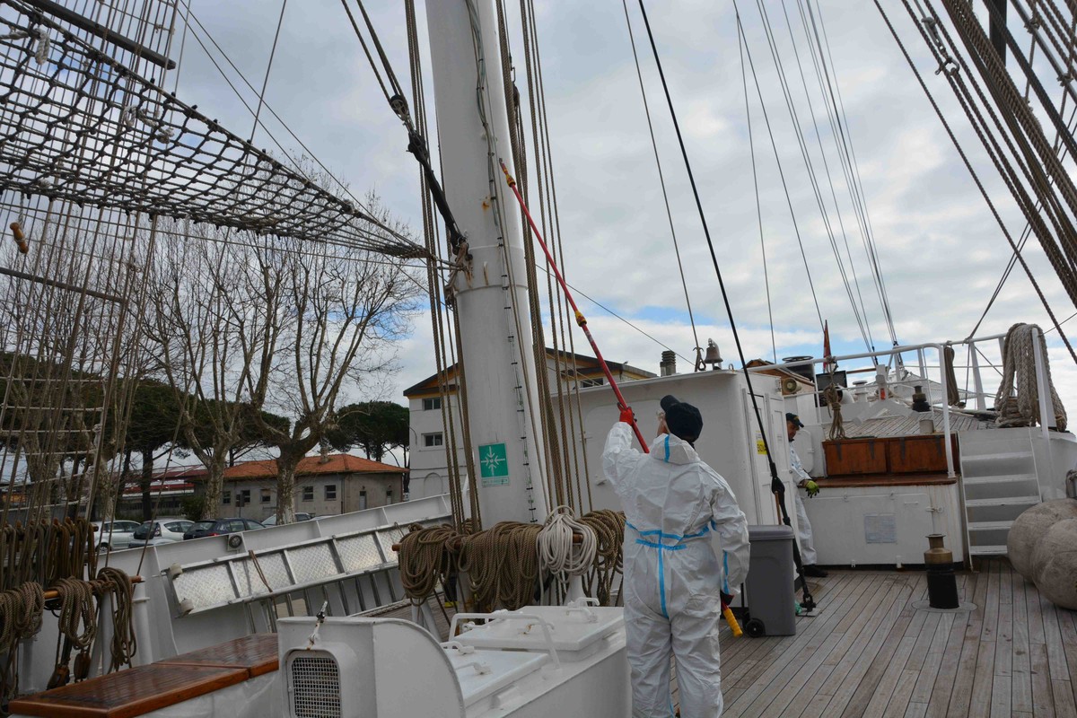 Nave Italia, il brigantino a vela più grande del mondo, si rifà il look in vista dell’apertura della campagna di solidarietà che prenderà il largo il 4 aprile dal porto di La Spezia dove è ormeggiata la nave.