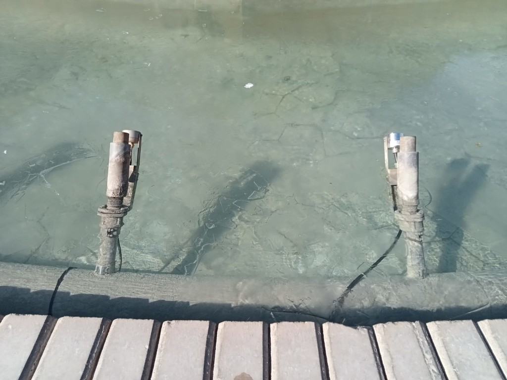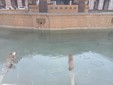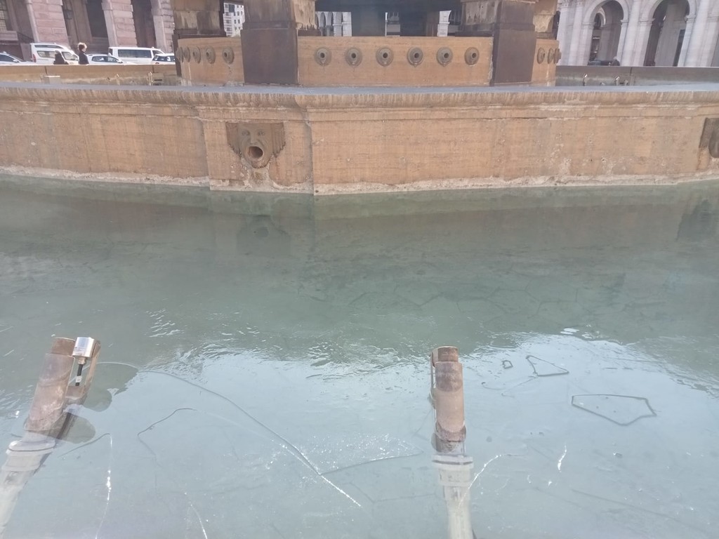 L'acqua della fontana si è così ghiacciata e lo è ancora. Le fotografie sono state scattate intorno alle 11.30.