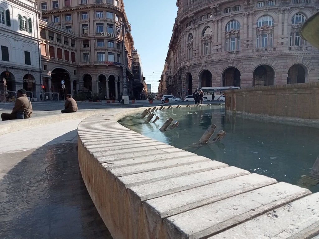 Le temperature rigide hanno fatto ghiacciare l'acqua della fontana di piazza De Ferrari. Durante la notte la colonnina di mercurio sono scese sotto lo zero in diverse zone della città.