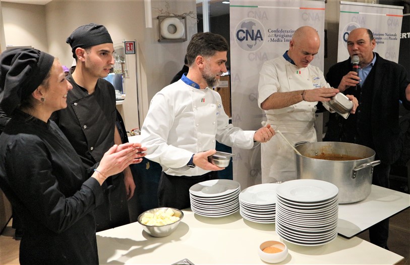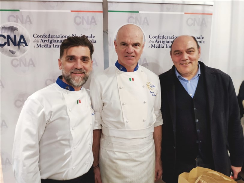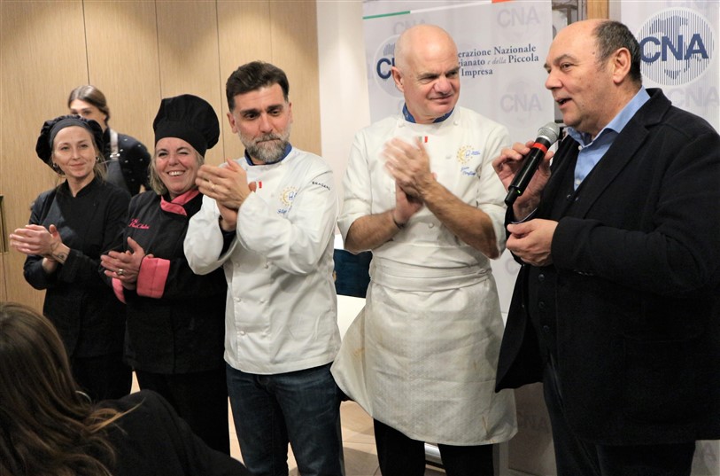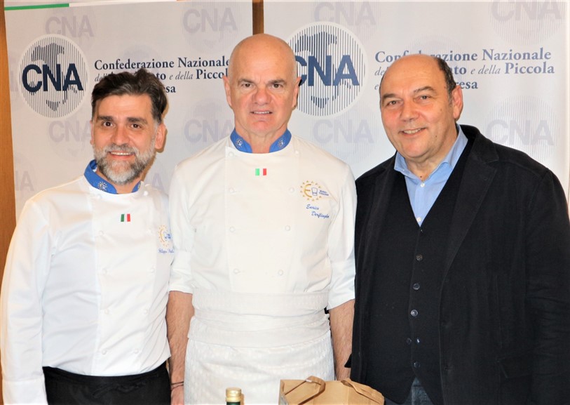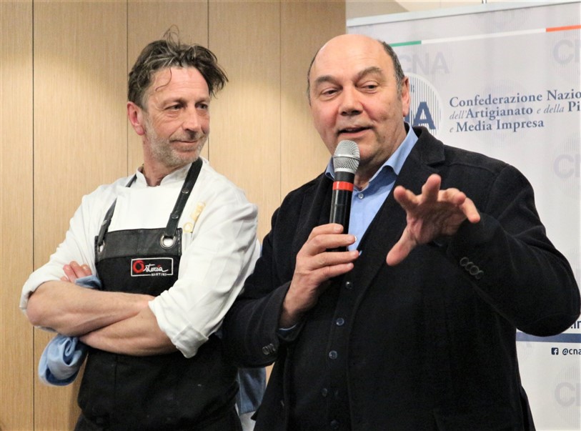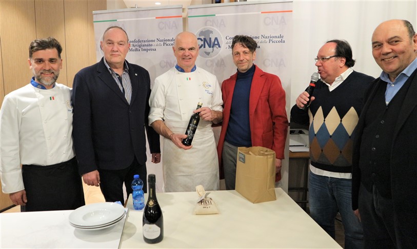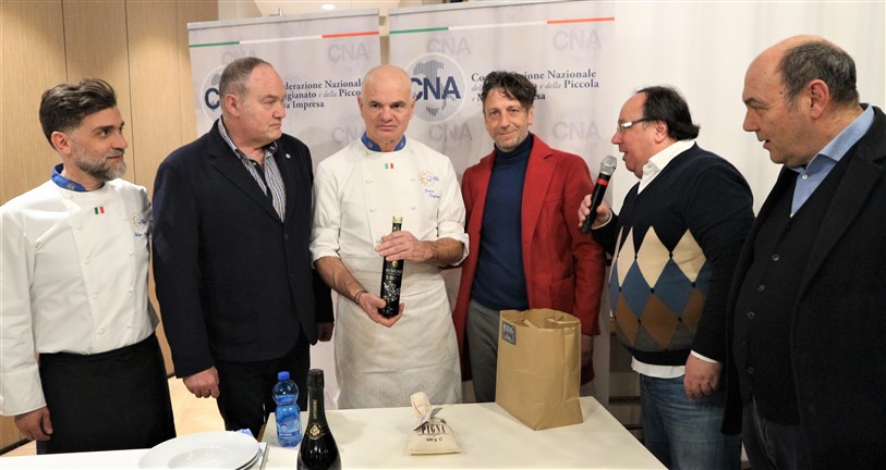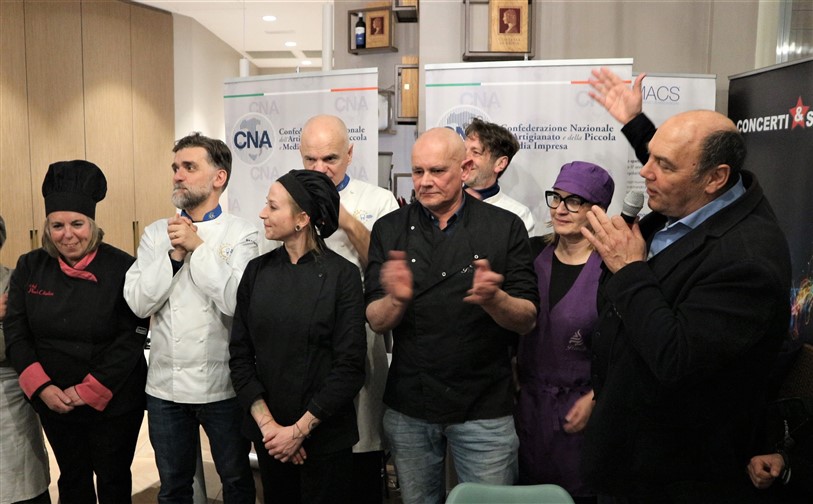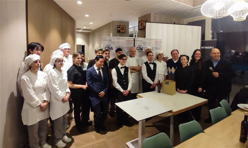 Una serata che ha visto la partecipazione di altri chef aderenti a Cna che tutti insieme hanno dato vita ad una cena di alta cucina e accompagnata da ottimi prodotti del territorio: i vini della Cantina Maffone, Sansteva e Poggio dei Gorleri, le olive denocciolate e l’olio Musicale del Frantoio Santagata d’Oneglia, i fiori eduli dell’azienda Ravera Bio.