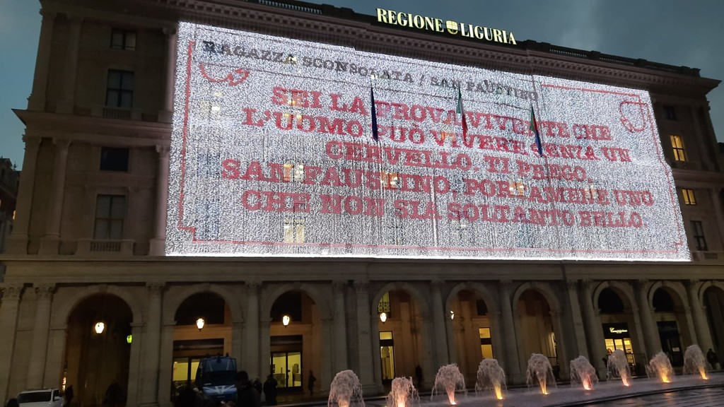 Dopo quelle scritte dagli innamorati, mostrate ieri, questa sera le protagoniste del megaschermo del Palazzo della Regione sono le dediche pensate per San Faustino, convenzionalmente noto come il patrono dei single: ad essere proiettate fino alle 24 saranno trenta frasi, scelte tra le più originali ed ironiche tra le circa 350 che hanno partecipato al contest.