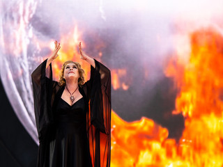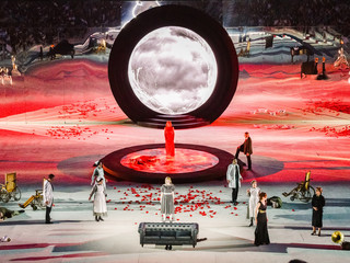 I video di D-Wok che alludono a oscuri presagi o terribili fatti di cronaca, gli splendidi costumi (firmati da Gianluca Falaschi) che rimandano agli anni Trenta e Quaranta, le musiche composte da Mario Conte e Andrea Chenna, le luci di Marco De Nardi che bagnano di sangue il palcoscenico, le luttuose figure del coro: tutto contribuisce a restituirci l’immagine di una società sull’orlo del tracollo.