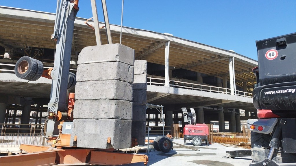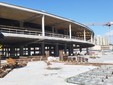 A est, completati gli adeguamenti strutturali sulla parte esistente del Palasport, prende forma il solaio di copertura del parcheggio, che costituirà il piano della grande piazza pubblica.