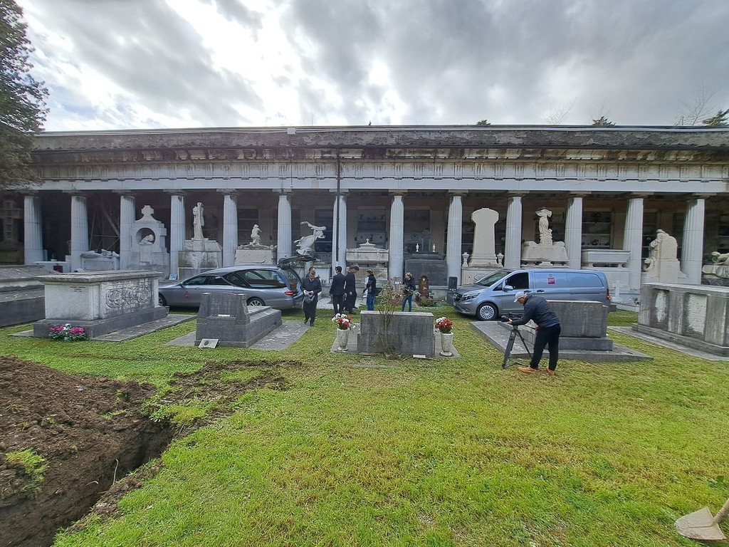 Per rendere le riprese credibili e verisimili, Giovinazzo ha voluto in scena gli uomini e i mezzi di A.Se.F., l’azienda partecipata del Comune di Genova specializzata in onoranze e trasporti funebri. La scena, in cui è stato simulato l’arrivo di un funerale al cimitero, trasportato e calato un feretro in una fossa, ha avuto come sfondo le gallerie storiche del Monumentale, rese ancora più suggestive dalla giornata piovosa.