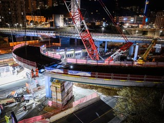 E' stato varato sabato e completato la notte scorsa, il secondo impalcato del Nodo di San Benigno, parte del complessivo sistema di collegamento che permetterà di connettere direttamente la sopraelevata Aldo Moro con il lungomare Canepa direzione ponente, alleggerendo il congestionamento sull’elicoidale. Il primo impalcato era stato posizionato domenica scorsa.