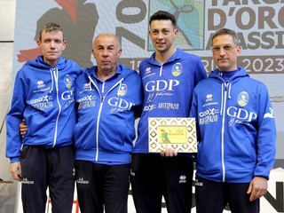 Nella Città del Muretto a firmare la 70a edizione della Targa d’oro, storico appuntamento primaverile con lo sport delle bocce, sono stati ieri, in un Palaravizza gremito da quasi mille spettatori, i campioni francesi Patrice Landraud, Fabien Amar, Sebastien Leiva-Marcon e Romaine Garcia, con la maglia della Bourguesanne di Bourg-Saint-Andeol, non lontano da Avignone. Francia che si era aggiudicata la prima edizione, quella del 1954, quella del 2014 (St. Vulbas) e quella del 2019 (Rumilly). Nell’albo d’oro succede alla Perosina Boulenciel. Niente da fare in finale (13-1) per i sorprendenti piemontesi Giorgio Cavallo, Nicolas Pretto, Mario Renato Carello, Luca Bacino (Bocce Mondovì). Sul podio del tabellone principale anche la Chiavarese (Emanuele Bruzzone, Gabriele Picasso, Stefano Zucca, Gabriele Ginocchio), società che ancora una volta ha tenuto alti i colori della Liguria (all’attivo anche il 5° posto della compagine capitanata da Carlo Ballabene), e gli altri transalpini del Saint Vulbas (Olivier Moncenis, Thierry Michel, Sebastien Mourgues, Fabien Couard). Ben 244 sono state le quadrette che hanno dato vita alla prestigiosa gara, con tanto pubblico in tutti gli impianti, già dalla mattina di sabato.