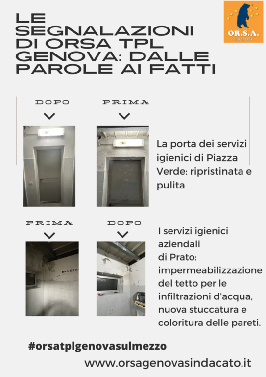 Il segretario del sindacato Cristiano Bianchi spiega in una nota: “Grazie alla nostra richiesta è partita la ristrutturazione di vari servizi igienici aziendali come questo di Prato, che ha necessitato di una impermeabilizzazione del tetto per le infiltrazioni d’acqua e una nuova stuccatura e coloritura delle pareti.