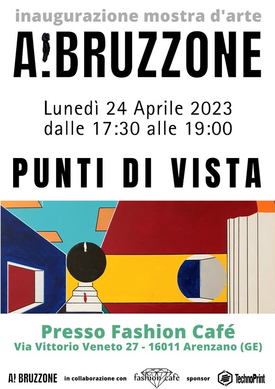 Vernissage - ad ingresso libero - al “Fashion Café” di Arenzano in compagnia dell’artista Andrea Bruzzone. Colori accesi, astrattismo e geometria: le sue opere saranno esposte nella sala del locale a partire dal 24 aprile dalle 17.30 fino alle 19. Terminata la giornata inaugurale, sarà il negozio "Technoprint" a continuare a far ammirare i suoi quadri fino al 30 aprile.