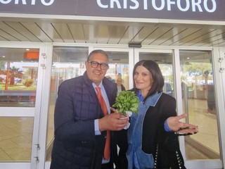 Ad accoglierla all'aeroporto Cristoforo Colombo c'era il presidente della Regione Giovanni Toti, che l'ha aspettata con un bouquet di basilico.