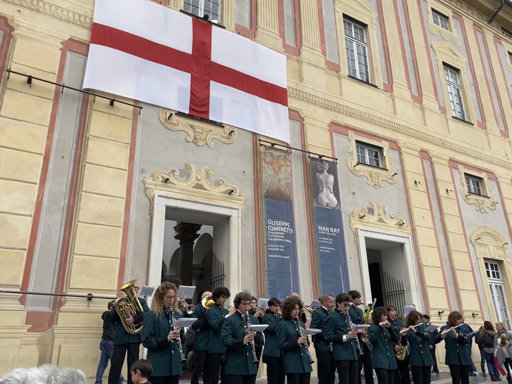 Presente anche il viceministro Edoardo Rixi: "Sono felice che il comune abbia deciso di celebrare la nostra bandiera, che nasce a Genova ed è giusto ricordarlo e ricordare queste tradizioni, farle conoscere, con l’auspicio di essere capaci e audaci come i nostri avi".