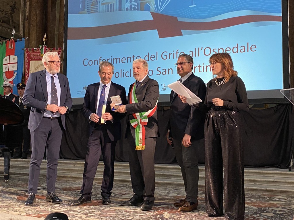 L'occasione è stata anche quella di consegnare il Grifo d'Oro al Policlinico San Martino. Commenta il presidente della Regione Giovanni Toti: "È significativo che in questa edizione 2023 della festa della Bandiera il Grifo d'Oro, la massima onorificenza genovese, vada al Policlinico San Martino, un fiore all'occhiello della nostra sanità: un premio che riconosce il costante impegno di tanti professionisti nell'assistenza a generazioni di genovesi e liguri, oltre a simboleggiare la nostra riconoscenza per il lavoro degli operatori sanitari di tutta la Liguria. Spesso si parla solo in termini negativi della sanità, quando in realtà è un patrimonio fondamentale della nostra comunità, e di questo bisogna essere orgogliosi". Insieme all'assessore regionale alla Sanità e al sindaco di Genova, il presidente ha consegnato il Grifo d'Oro 2023 all'Ospedale Policlinico San Martino di Genova; a ritirare il premio, il direttore generale Marco Damonte Prioli.