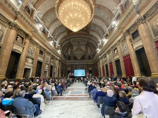 Se nelle piazze si respirava aria di festa, con l'intrattenimento musicale e i costumi d'epoca, è nella Sala del Maggior Consiglio di Palazzo Ducale, gremita di persone, che si sono svolte le consegne delle onorificenze ai genovesi che si sono distinti nel mondo.
