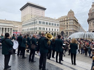 Al termine della cerimonia, la festa si è spostata in piazza De Ferrari con il flash mob delle scuole di danza attorno alla fontana, che ha visto il coinvolgimento anche di figuranti in abiti medievali e genovesi, gonfalonieri e l’accompagnamento musicale della A.P.S. Banda Musicale Filamonica Pegliese Marco Chiusamonti. Si sono esibiti gli sbandieratori e i musici del Gruppo storico Borgo e Valle Città di Levanto e oltre 300 ballerini, provenienti da scuole genovesi e non solo, diretti da Max Savatteri della Metodo OKULT Asd e accompagnati da 10 ballerini professionisti. La piazza si è trasformata nella in scena di uno spettacolare flash mob, dedicato alla bandiera di Genova. Alla fine delle esibizioni lo srotolamento di una grande bandiera di Genova davanti a Palazzo Ducale.