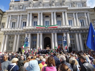 Fischi al sindaco di Genova Marco Bucci e al presidente della Regione Giovanni Toti questa mattina durante la celebrazione del 25 aprile in piazza Matteotti. I due interventi sono stati al centro della contestazione di gran parte dei partecipanti alla manifestazione che ha visto un lungo e applaudito discorso da parte del presidente di Anpi Genova Massimo Bisca e l'orazione da parte dell'ex procuratore di Genova Francesco Cozzi.