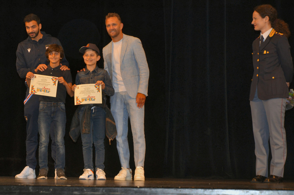 A consegnare le targhe ai vincitori, i giocatori di Genoa e Sampdoria Mimmo Criscito e Mehdi Lérisse.