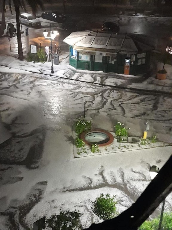Questa notte una grandinata ha colpito il Tigullio, concentrandosi principalmente su Santa Margherita Ligure: nell'immagine scattata da Barbara Monucelli e condivisa da Limet sui social si può ammirare lo spettacolo del paese imbiancato.