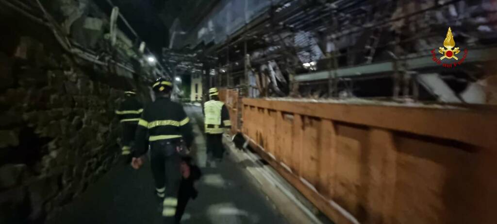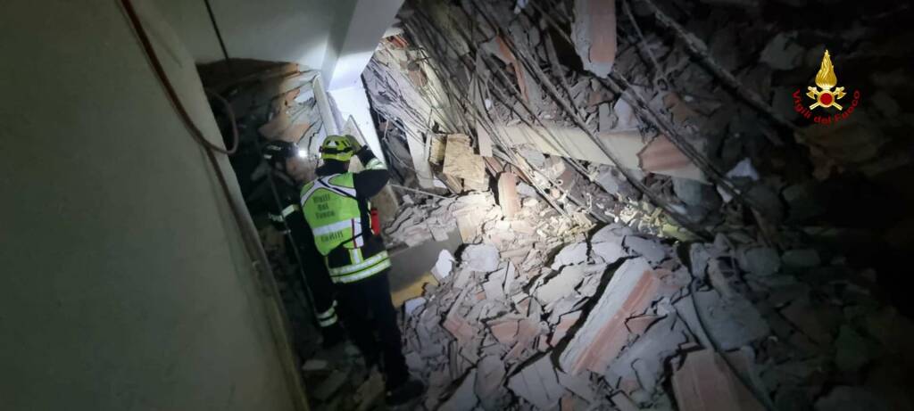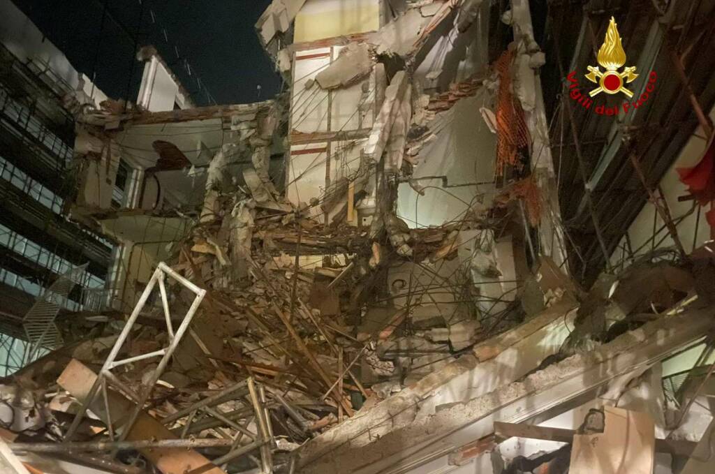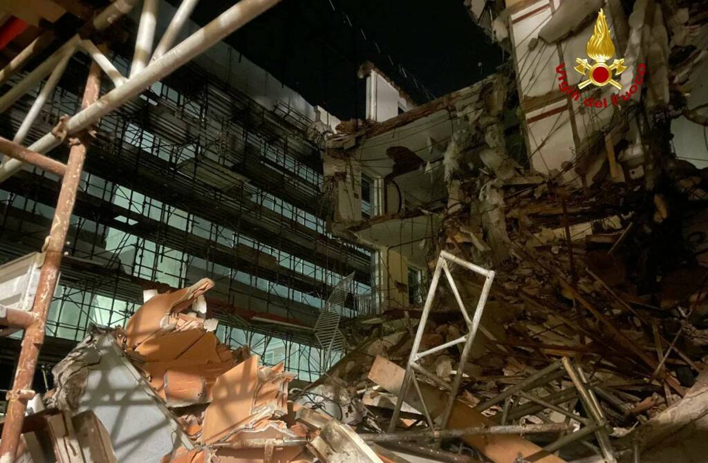 Il crollo è avvenuto ieri nella tarda serata. Stamattina le squadre dei pompieri hanno ripreso le operazioni all'interno dell'hotel Maggiore