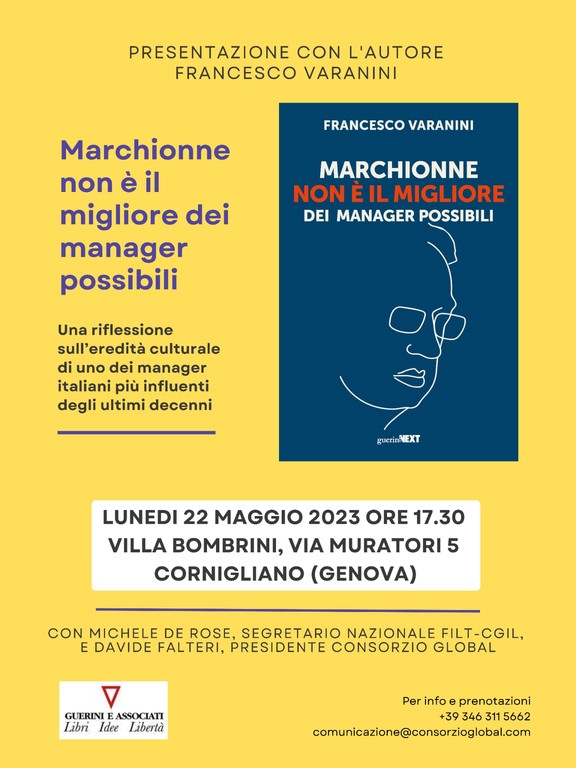 Nella suggestiva cornice di Villa Bombrini a Cornigliano è stato presentato l’ultimo libro di Francesco Varanini, intitolato “Marchionne non è il migliore dei manager possibili” . Un’osservazione lucida e attenta dell’attualità unita all’esperienza dell’autore, che nel corso della sua carriera ha ricoperto le cariche di manager, amministratore delegato e imprenditore, oltre al suo impegno come ricercatore sociale di formazione e insegnante.