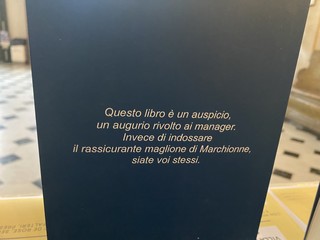 Questo libro parla per 40 pagine di Marchionne, lo prende a esempio, dice che lui sarà stato bravissimo ma poi suggerisce di smettere di adorare l’eroe e di immaginare come noi possiamo essere dei manager. Parlo della mia esperienza di manager, dell’esperienza di tanti altri che ho conosciuto, e credo che sia un libro che può essere utile a manager e aspiranti tali per essere fiduciosi in se stessi”.