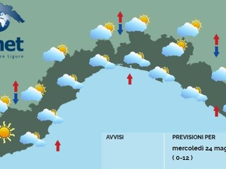 Ecco le previsioni meteo a cura di Limet per la giornata di oggi, mercoledì 24 maggio.