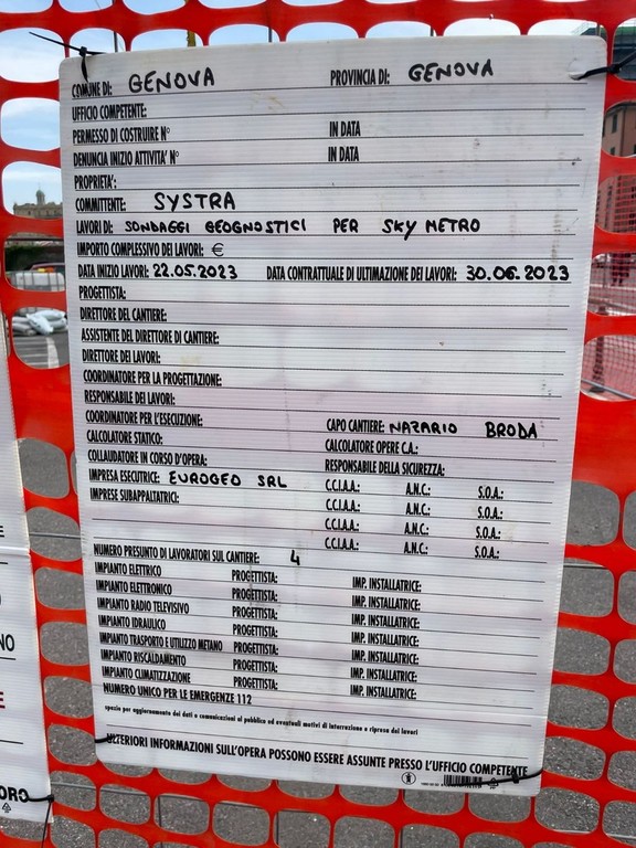 Dopo che nei giorni scorsi l'assessore alle infrastrutture e all'ambiente di Regione Liguria Giacomo Giampedrone aveva detto in consiglio regionale di non aver ancora ricevuto alcun progetto sullo Skymetro, compaiono i cartelli dei lavori di costruzione dell'opera. A scoprirlo i comitati che si oppongono alla realizzazione della metro di superficie che dovrebbe collegare la Valbisagno al centro.