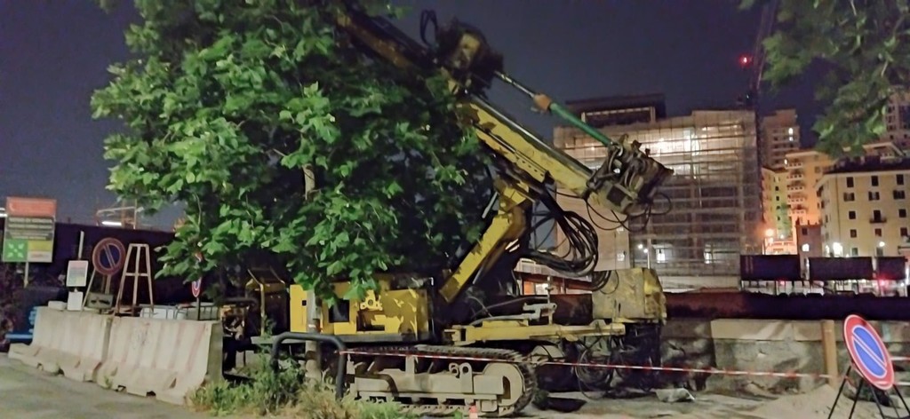Cioè sono le macchine che servono a effettuare le indagini geognostiche per lo Skymetro indicate nei cartelli, sia quelli di cantiere che quelli che avvisano del divieto di parcheggio dei prossimi giorni. (Che magari, queste macchine, sarebbe meglio non appoggiarle alle chiome degli alberi per metterle a riposo, ma questa è un’altra storia che fa riferimento ad altre attenzioni). Così questa è la prima volta che vediamo scritto su un cartello ufficiale il termine ipocrita Skymetro.