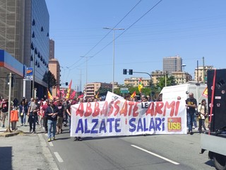 “Alzare i salari, abbassare le armi” è uno degli slogan del corteo organizzato da USB - Unione sindacale di base per questa mattina a Genova. Sono circa 300 le persone che sono scese in piazza nel quartiere di Sampierdarena per manifestare "contro le drammaticità che affliggono il paese: inflazione a doppia cifra, precarizzazione del lavoro e disoccupazione, morti bianche, carovita".