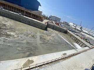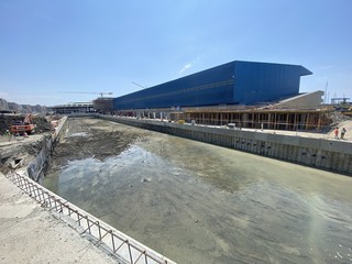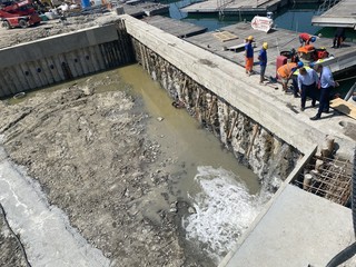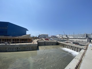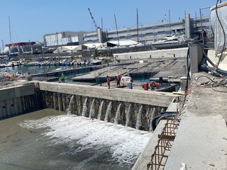 Le operazioni di allagamento dei canali del Waterfront di Levante sono iniziate questa mattina alle 11.42, in ritardo sulla tabella di marcia a causa del ritrovamento di un masso di roccia che ha costretto i tecnici a far slittare di quasi quattro ore la fase di riempimento.
