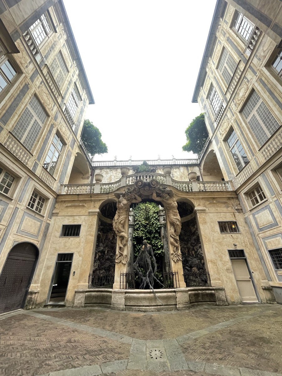 Il palazzo ha una storia che l’artista omaggia ricollegandosi al mare e ai commerci che la famiglia Lomellino aveva a Tabarca, con la pesca del corallo. Ma quasi non ci si aspetterebbe di trovare l’arte contemporanea in uno dei palazzi che meglio racconta la storia del Seicento genovese, invece questo legame funziona molto bene.