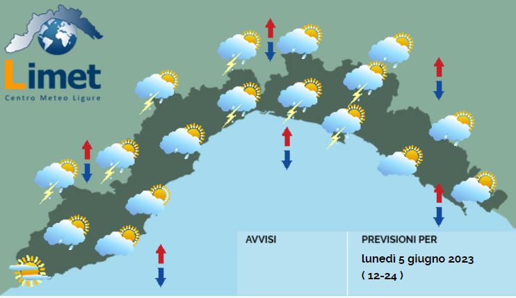 Ecco le previsioni meteo a cura di Limet per la giornata di oggi, lunedì 5 giugno.