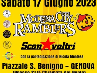 Loro, invece, sono i Modena City Ramblers, celeberrima band dalla carriera trentennale, che sabato prossimo, dalle 21,30 in poi, si esibirà dal vivo in piazzale San Benigno, presso la Sala Chiamata del Porto, nell’appuntamento organizzato dalla stessa Ale Villa in collaborazione con Molly Malone’s Pub di Multedo, Music for Peace, Compagnia Unica, Calp (il Collettivo Autonomo Lavoratori Portuali di Genova) e La Resistente. La sottoscrizione d’ingresso è di venti euro comprensivi della consumazione.