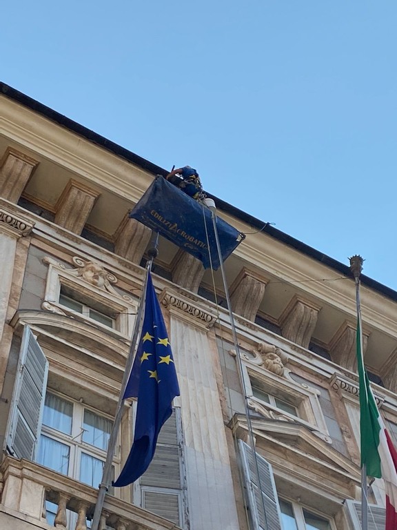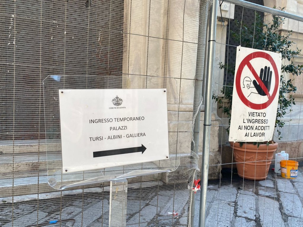 L’ingresso principale in Municipio, però, è stato chiuso per ragioni di sicurezza. Si accede a Palazzo Tursi solo dall’ingresso laterale.