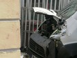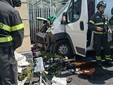 Un fioraio che si trovava davanti al suo negozio è stato travolto da un furgoncino che è piombato contro il muro della struttura.